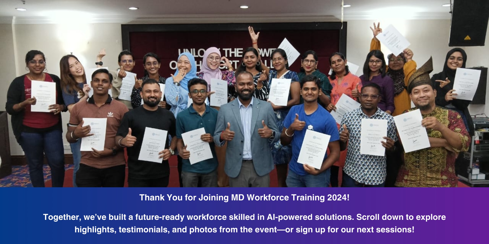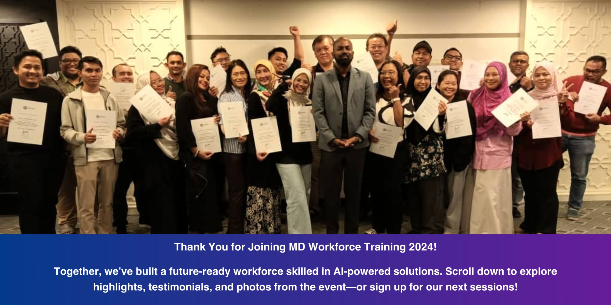 MD Workforce Training 2024 was an incredible journey of learning, collaboration, and innovation. We’re proud to have empowered over 160 professionals across Malaysia with the skills to harness AI for their careers and organizations. But this is just the beginning—your journey to mastering AI continues with us!